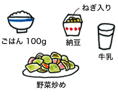 | 朝 | ごはん 100g | 168 | 2.5 | 0.3 | 37.1 | 0.3 | 0 | 0 |