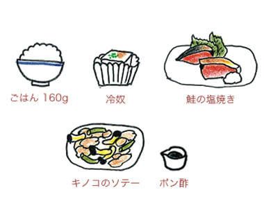 | 朝 | ごはん 160g | 269 | 4 | 0.5 | 59.4 | 0.5 | 0 | 0 |