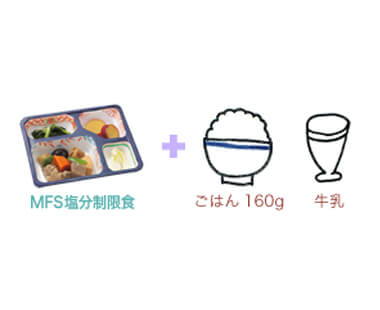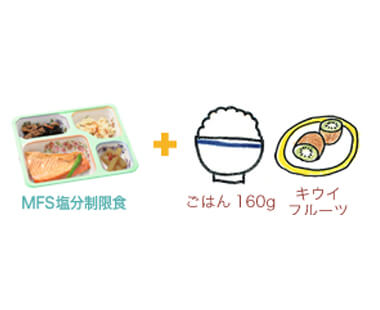 | 昼 | MFS塩分制限食 | 240 | 19 | 9 | 20 | 8.5 | 120 | 1.7 |